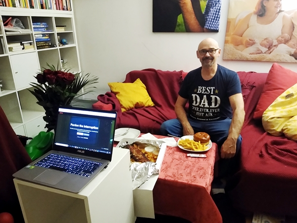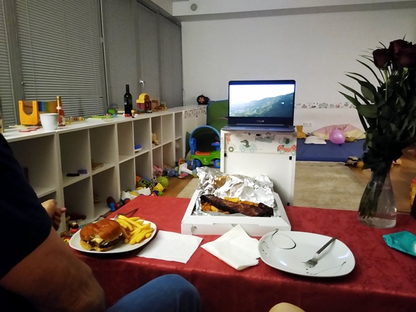I had ordered the food for 7 pm, but it arrived half an hour later, which was just fine. It gave me time to do all the cleanup early, so that I did not have to worry about that later. We set the table up in our living room, I put the nice tablecloth on it, and our plates, and then the food we had ordered. I got my computer and looked for a romantic comedy we could watch, and we found just the right one. We have very different taste in movies, so it's not that easy to find one we both like, but we liked this one. It was a really nice evening, you could even call it a date, something we haven't had in forever. I wouldn't mind doing this again soon. And the little ones were so nice to peacefully sleep while we were eating and watching the movie. After it was over, they started stirring and demanding their milk. I fed them, turned the dishwasher on, and went to work in the office. As I've been trying to get things done, I've also been overwhelmed with all I need to do. I also tried to call Paul today to get a much-needed updated, but it didn't work out.