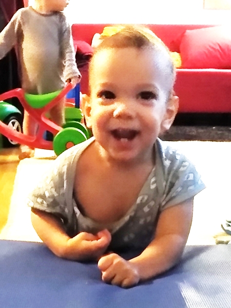 I went to bed at 3:30, and they woke up as usual around 8 am. I made breakfast, we fed them them, and Randy got his breakfast ready and then took them downstairs with him, while I went back to bed. At 10:30 he put Sammy down for a nap, but not Emmy, as he did not seem tired to him. He seemed pretty tired by lunchtime, though.