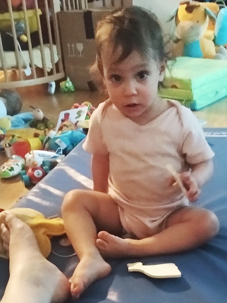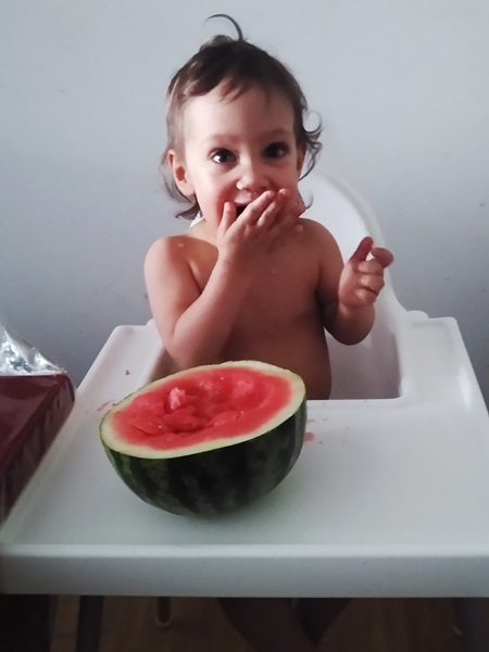 Last night I thought I was going to bed earlier again, but it didn't work out this way, and so it was just before 4 am again. We got up just before 8 to feed them. At 8:30 Caritas helper Christine arrived. Thank God! She hadn't been here in the morning in a week. The kids were already close to finishing. Tammy was eating her beloved watermelon. I made sure everything was ready for Christine to take over, and went back to bed, only for Randy to drop Sammy on me like he usually does. Even when the Mobile Support lady arrived to play with Sammy, he still stayed with me. I ended up taking him downstairs to her, while Randy finished making his breakfast.