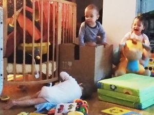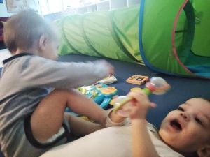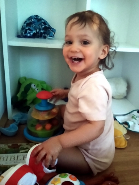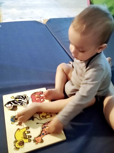 Randy left to run some errands, and I got to stay have fun with my three little ones. And they kept me really busy, with puzzles, and shapes, and having to throw them around. Sammy also had lots of fun going through everything. Daddy returned just in time before 5 pm, so he could take my place and I could go get their dinner ready.