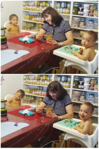 Once again they had fruit after their cereal and fruit jar, and then I cleaned them up and they went dowstairs with Sonja. I had some housework to do, so I stayed upstairs for a while to do that. I was glad I got the chance, as I never do. At night they sleep right there, so there are certain things I can't do. As it was getting later and I could hear Emmy fussing, I decided I needed to go downstairs and spend some time with my little ones. Precious time I'll never get back.