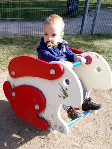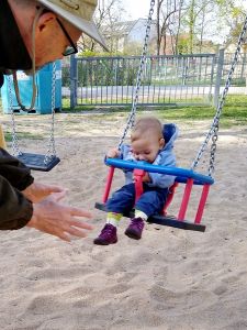 It was a short night, though I headed to bed a little earlier than usual, and then it was a regular day, a day with Sonja. I cooked a new dish for lunch, and they all loved it and ate it all. Then they all lay down for a nap, and had their afternoon meal after getting up, which was about 2:30 pm. And then our routine changed because we dressed them, put them into the strollers and left the house. I just found out that we only have two more warm days left, before it gets cold again.
