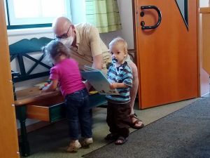 For the last time we had our host's wonderful spread of foods on the table. After a while the kids got up and started playing. Once I was done, I went upstairs to pack and left Randy and the kids downstairs to play. Then Randy came to start picking up stuff to carry it to the car. We have a lot of stuff with us. It all took a while, but then we were finally ready to put the kids into their seats. But it wasn't quite time to leave yet, as we needed to get a Covid test done to check into the hotel at night. Thankfully our host knew exactly where to go - the local doctor. We were way out in the countryside, so it was a small doctor's office. It was the first time since leaving Vienna we had to put a mask on again. Our friend stayed by the car with Sammy, while Emmy and Tammy came inside with us. They had some toys there that they started playing with. We checked in, and a few minutes later they did the test. I went back outside with the kids, while Randy was waiting for the test results. And then Emmy's fingers got hurt, when Tammy slammed the car door on them, and he wanted his Daddy, so I took him back inside.