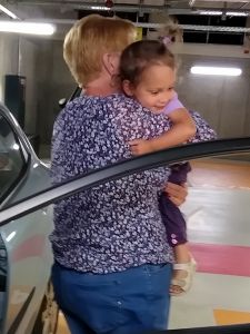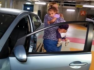 I immediately started dressing them for us to leave, and a few minutes later we did. They were excited to get to be in the car again, and to get to see Grandma. They were partly running to get to the car. By 2:30 we drove off to return the car at the main train station.