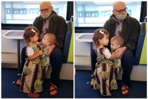 We had a great time, and our friends also enjoyed the kids. Emmy was really cranky until he fell asleep on my shoulder. Then it was time to make our way to the train station. I put Emmy into the stroller, where he continued sleeping. Tammy didn't want to get in but wanted to be carried by our new friends, so they did. Once we got to the train station, we said our good-byes. We put Tammy into the stroller and made our way to the platform. The train arrived just after we got there, so perfect timing.