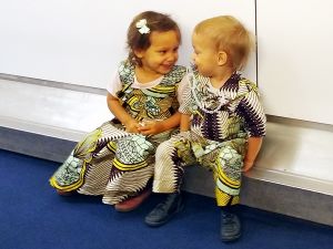 And then we had a very pleasant surprise. Barbara, who had come to Mali with us last Christmas and was a tremendous help with the little ones, had come just to see us and not told us in advance. The little ones showed no signs of recognizing her. Last Christmas was ages ago for them. Barbara joined us in the baby room during the service, which was great, and the only time she could spend with us. They had fun with her, and she with them.