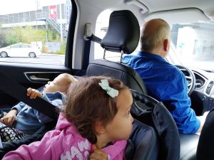 Day 735. Last night I shared with you how busy first Sammy and then Emmy kept me. Emmy woke up every few minutes, needing to be rocked, then put to bed. In between I was getting everything ready for our trip, so we could just leave in the morning. I was so exhausted, and with everything ready, I started heading to bed right after 11pm. At 2 am I tried about 7-8 times to put Emmy back to bed before I gave up and let him sleep in our bed. However, he stayed quite awake for some time. And he was up for good really early, asking for food really early too, so I got little sleep last night. Since we had to leave at 6:30, I finally just gave up and got up, as he was crying for food early too. We dressed them, loaded up, and left on time.