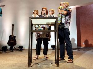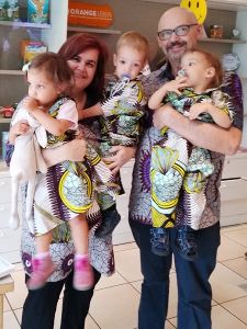We unloaded at the church, took our stuff upstairs, where they thankfully had a baby room, and then I set up our Mali table in the lobby. I had only done a table and presentation once in our own church since the little ones were born. While the others had stayed upstairs, it wasn't long before they came downstairs to join me. They had missed their Mommy. And so I took advantage of us all being there and no people yet and asked someone to take a picture of us. Once done we went back upstairs, where the service was about to start.