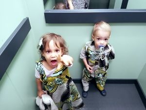 I was glad when we got home at 4:15 but was also very tired. And Tammy hadn't even slept once! We decided to go ahead with dinner and put them to bed early. And so they stood on the chairs in the kitchen with me, as always, while I got their dinner ready. From the dining room table they went into the bathtub. By now Emmy was already so cranky and tired, he was just crying and came out of the water early. By 5:30 they were all in bed and fell asleep rather fast.