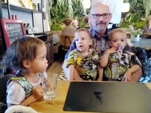 More and more people had left, and we had met the family that was going to lunch with us. We finally started packing up and left to pack the car up again. Emmy was all excited to be riding a car again. By now it was noon and they were all tired. And he was impatient to get into the car, but we first had to put the car seats back in. This time Emmy was in the middle with his brother and Tammy in the front. It was only a few minutes to the train station and then the restaurant right there, but Sammy fell asleep first, and then Emmy. The girl was still wide awake.
