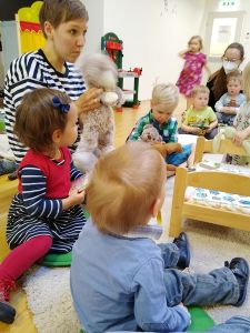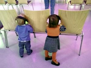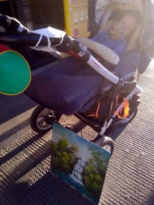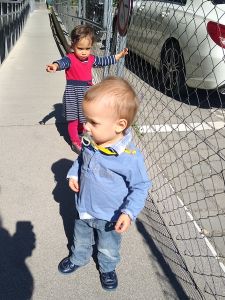 We left a little later than usual, I guess, because when we got to the train station after having taken the tram, it was quite a long wait time, over 20 minutes. And the first train was late; it was one where you had to carry the strollers up a few steps, and as the S-train was right behind it - with no steps - we waited the additional minute for it to take us home.