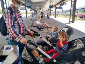 We were glad when the train came just after 8 pm, and at 8:15 we were finally home. It takes a while before all three are undressed, changed, dressed, and in bed. But the advantage of the late time was that they fell asleep quickly.