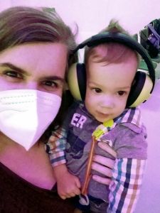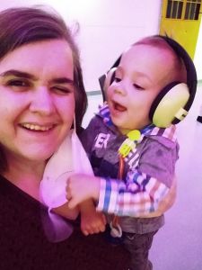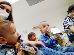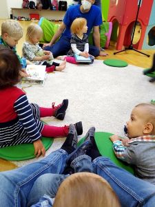 There was really nothing special about the morning or afternoon. It was food jar day, and they enjoyed the pasta with tomato sauce and ham. Nap time was a disaster. It just so happened that Emmy wasn't sleeping yet, when Tammy lay down for her nap, and so it was party time and impossible to get them to sleep. Sammy was asleep fast, and woke up before the other two even went to sleep, and he had slept for over an hour. At some point they did fall asleep, and woke up too early really, not having slept enough. Sammy came upstairs with Randy, and we fed them their afternoon meal at that time. I had not finished getting their dinner-to-go ready, so I did that while they were running around, as well as picking out their clothes. We dressed them, got ourselves and everything ready, and left a few minutes early.