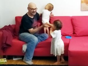 Today was also a tough day for Sammy who got hurt a lot. One time he fell over and hurt his head, crying. Just as he had calmed down his brother hit him several times. Again I tried to comfort him. Then his sister hit him with a book several times. Poor boy. It seems he was crying most of the time today, and I did a lot of comforting.