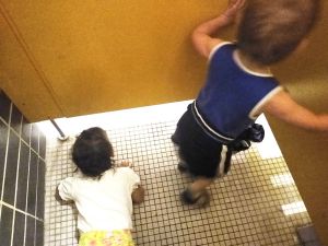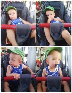 I continued working, cleaning up and getting everything ready for our outing. At 1:20 our noise woke the boys up, and we dressed them both, just adding pants and shoes to what they had on. Then I had to wake up the girl. I expected her typical behavior of throwing a fit, but was shocked to find her all calm, no fit. I was able to dress her, put her shoes on, and put her into the stroller, and she did not mind at all.