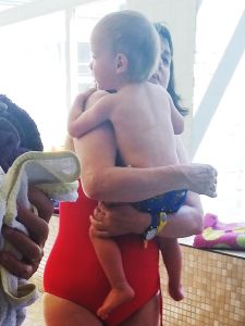 The class itself was a little chaotic. There was no clear ending to the previous class, or beginning of the next. The teacher said we'd take it easy today, to get them used to the water again. Sonja had Emmy at first, and I had Tammy. We all went into the pool, with Emmy screaming, but I encouraged Sonja to just get into the water with him. He just needed time. After a while I suggested she'd jump up and down with him, and then a smile crossed his lips. He loves jumping! At the end, when I had him, he even walked timidly over the platform to jump into the water - or into my arms, with me in the water.