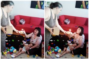 I also had Sammy for a while. Now Sammy had the most fun, laughing and smiling and giving it his all. He was doing great! I think overall it was a successful first session out of five.