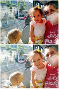 Day 675. Last night it was 1:30 am; too late, as our alarm went off at 7:25 this morning. While they were not so loud as to wake us up, they were all awake. I made breakfast, fed them, cleaned them up and dressed them. At 8:15 we left the house to go to their first dance class. We walked to the bus stop, took the bus, and both Tammy and Emmy were sitting with me on the bench. After we got off, we still had to walk quite a bit to get to the big business complex. Now the challenge was to find building K; I even saw a sign for building Z. There was another Mom with a baby. Since it was her first time as well, she was also looking for the building. I asked a guy who pointed us in the right direction, and we finally got there, nearly on time.