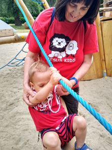 I cleaned them up, dressed them, and took them downstairs, where I turned the worship music on, and we started worshipping God. Well, I did. Sammy joined us, and I got a Bible out to read some stories. When Randy came with his breakfast, I left them and went upstairs to clean up and do office work. Sonja arrived at 9:15, and Randy came upstairs with Sammy to take him to his physiotherapy class. He was practicing going from a sitting to a standing position today.