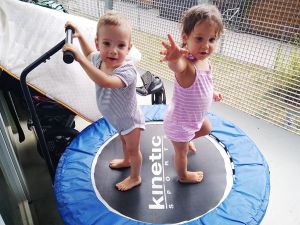 And so it was time for the afternoon meal. I opened the balcony door, and Tammy and Emmy went straight for the trampolin. I got their jar and was feeding them out there. Tammy got a hold of the spoon one time, and gave Emmy something to eat. And Emmy especially enjoyed his peanut butter, getting some from me and from Randy, and also grabbing the spoon and walking around with it.