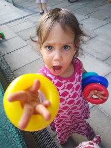 While they were having fun, I was working. Until 10:30, which is when I started cooking. It took me longer than expected, so it was already after 11 am, when we sat down to eat. We had steak today, which they don't eat often, and Tammy ate hers really quickly, and I gave her some of Emmy's. Then they had their icecream, and after that yoghurt with pear sauce. They were already pretty tired. I cleaned them up, dressed them, and put Emmy to bed right away, while Sonja went downstairs with Tammy.
