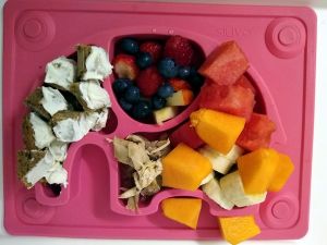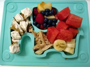 We got home at 5 pm. Randy went downstairs with them, but suggested I'd start making their food right away, which was half an hour earlier than usual. And so they came up to eat at 5:30. Today I took a picture of Emmy's and Tammy's plates. They had the leftover chicken on it too, and that's the first thing they both ate. The cantaloupe came next for Tammy, and after that she didn't really want to eat anything. Both of them still had most everything on their plates, when they stopped eating. They did pretty well in the bathtub in terms of eating their food, but didn't eat it all. Sammy, however, finished all his food in the bathtub. And they had lots of fun playing. I could tell Emmy was pretty tired. By 6:30 pm they were in bed, and the boys asleep by 6:45, which is early for them. Sammy hadn't had a long nap. Tammy was tired too, but doing her typical twisting and turning and whining. However, my being with her helped her calm down more quickly, and she was asleep faster than expected. And so I got to go get myself something to eat, while Randy had left for the grocery store. I ate and then went back to work. Now it's only 10 pm, but I'm so very tired that I don't think I can get any more work done tonight besides the cleanup I have to do.