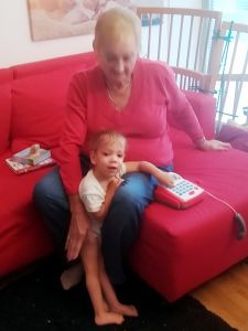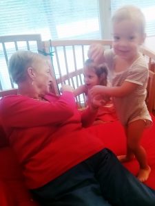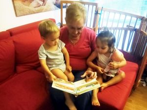 After breakfast I took them downstairs, where I turned worship music on and got their Bibles out to read. Tammy is always eager to read right away, and we went through a lot of stories. When Randy came with his breakfast, I left them and went upstairs to finish cleaning up. There was no point starting any work, as my Mom was coming to visit, for the first time since their birthday end of August. She arrived at 9 am, and the little ones were excited to see Grandma again. She brought a new book, and so they sat down to read it with her. For the next two hours they had fun with her. Then she had to leave, and I started cooking lunch.