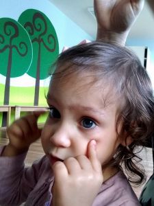 Sammy got woken up first, while I picked up Emmy to dress him him. Then it was Tammy's turn. Time was already pretty short. She'd only had half an hour of sleep, and so she was very cranky and upset. She was fighting me the whole time as I was trying to dress her, and then put he into the stroller. I had to put the seatbelt on against her will. It was already after 2 pm, when we left the house, and I didn't think we'd make our bus. However, we did get to the dance studio on time. We showed our negative Corona test result and were allowed inside.
