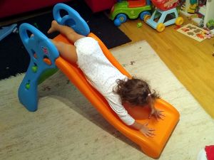 We had nearly 2 hours of playtime together, which was great. We did all kinds of things. They were swinging and sliding, playing the guitar, playing balll, reading books with me, watched a few minutes of "Barbapapa", and I was swinging them around. We did not get bored. By 5 pm Randy and Sammy were back, and a few minutes later they came downstairs, while I went upstairs to work a few more minutes before it was 5:30.