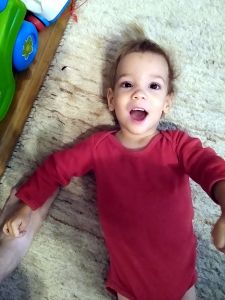 As the food was not ready yet, we sat down at the table where I was making their bread and cutting fruit right there. It worked out better than expected. They were somewhat hungry, especially Emmy. But the time came when they'd had enough, and Tammy got up and went to the bathtub, and Emmy followed her. I put them in, and then they ate a little more. Sammy ate everything on his plate, contrary to his siblings. As Emmy was tired and cranky, he came out first, and then the others. Today they were in bed before 7 again. Sammy fell asleep fast. Emmy wanted me to hold him, and I did. Tammy was wide awake and moving around in her bed. When I put Emmy to bed, he continued sleeping, and so I picked Tammy up, who enjoyed the attention. When Emmy woke up again and wanted to be held, I put her to bed to pick him up, but she didn't appreciate that at all. In the end I lay down in bed with Emmy, while Randy sat down in the chair with Tammy. After a while we put them both back into their beds.