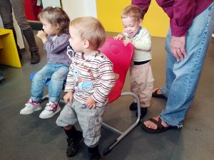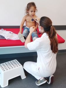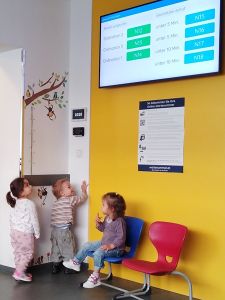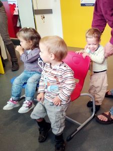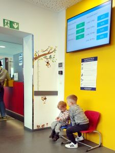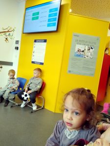 We left the house at 9 am, and it takes us 45 minutes, a subway and a tram, to get there. It was a busy place again. We received a number and sat down in the waiting room. None of our kids had a fever, and they were all cheerful and playing. They had fun with the other kids in the waiting room, and especially the two kids chairs were really popular among them all, sometimes leading to fights who could have it.