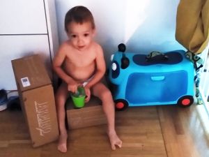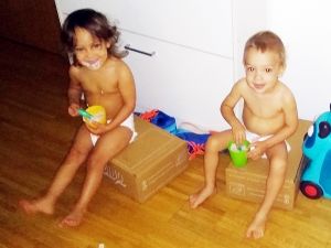 Last night we turned our clocks back, and that affected everything today. The kids got up an our earlier obviously. It was about 7 am, when I got up to make breakfast. They're not keen on eating cereal with milk any more, but they did like sitting down on the boxes to eat, so they at least ate some this way, rather than not eating any at the table.