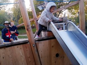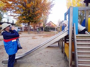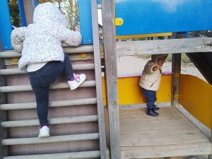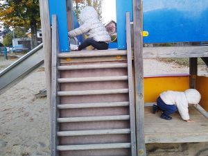 Then the boys went to bed, and Randy downstairs with Tammy. Thankfully I was able to get Emmy to sleep rather quickly, and then returned to my computer to work. At 12:30 actual time (1:30 body clock) Randy returned and put Tammy to bed, and after a while she fell asleep too. All three babies sleeping, we don't have that too often. Sammy woke up first. I lay down with him and had some fun with him, before he went downstairs with Randy. When Emmy woke up, I tried to lie down with him, but he also wanted to go downstairs, so I took him, together with snacks. I believe it was before Emmy woke up that I had actually fallen asleep. And then Tammy was suddenly wide awake and standing right there. It was just after 3 pm. So I called the boys upstairs, and we started dressing them all to take them to the playground. It was a sunny day, and because of this sickness that's been going for over 3 weeks, they haven't been going anywhere. This afternoon Emmy's fever was only a little elevated, thank God!