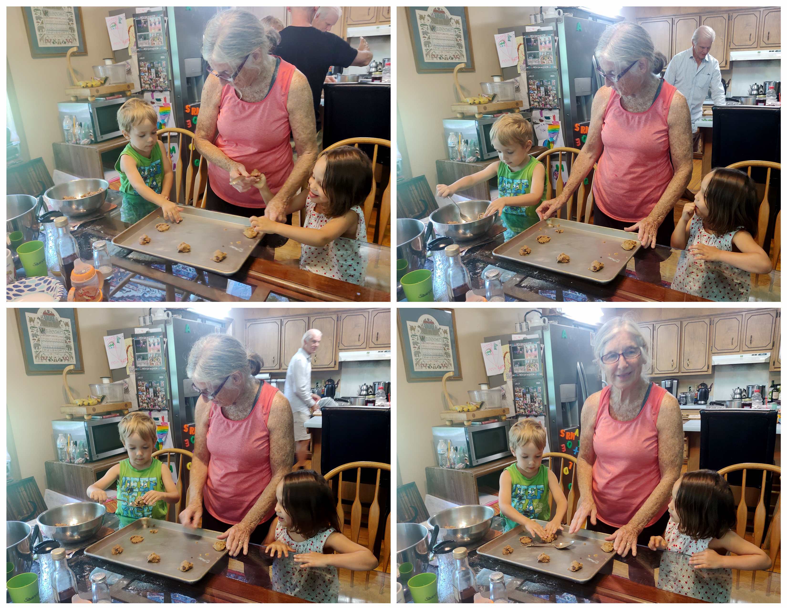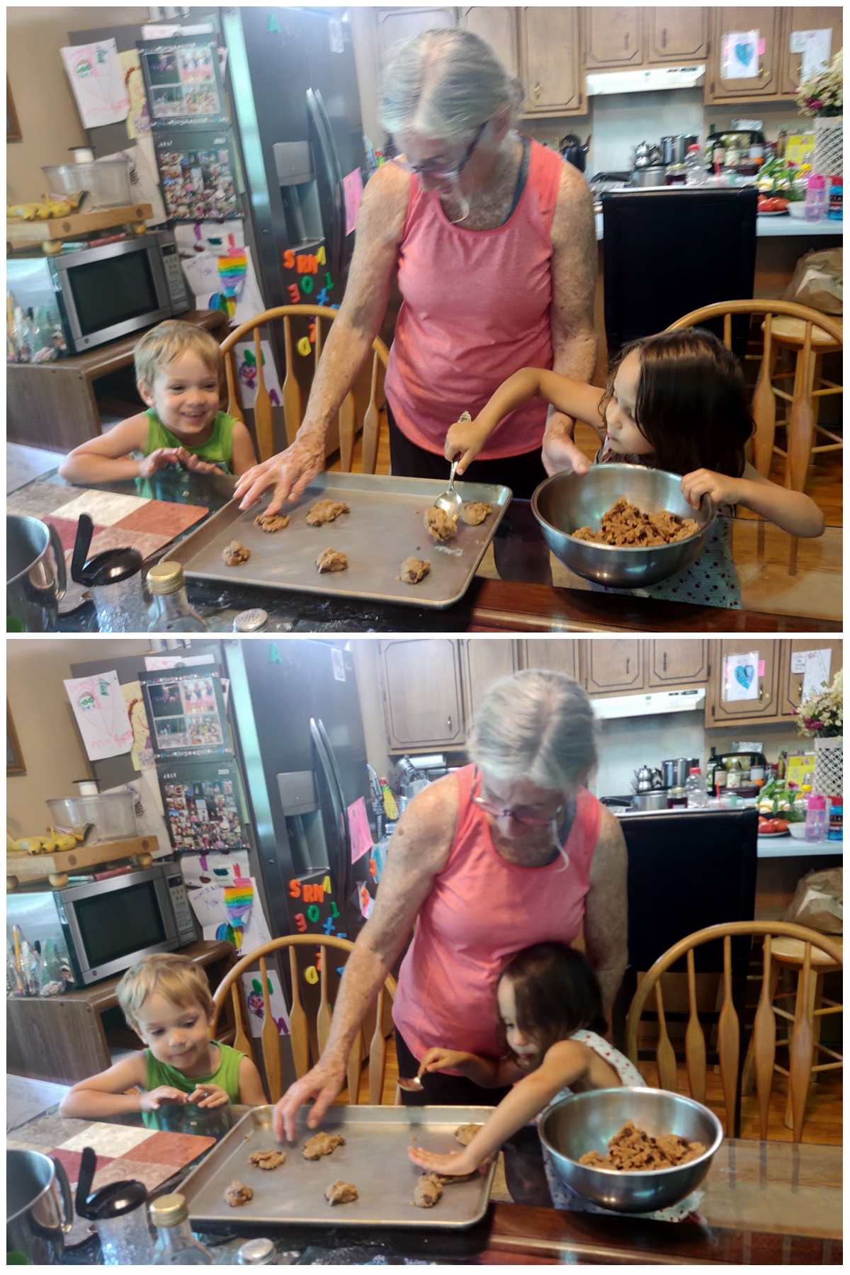 After lunch, I put them to bed for their nap at 1:30 pm and stayed with them so they'd fall asleep. At some point I lay down on my own bed and did fall asleep for a short time. It was Emmy who woke up first and woke me and Sammy up. He wanted his tablet, and so did Tammy, once she was awake. Our friend then said that she was making cookies and was inviting them to help make them. They greatly enjoyed that experience.