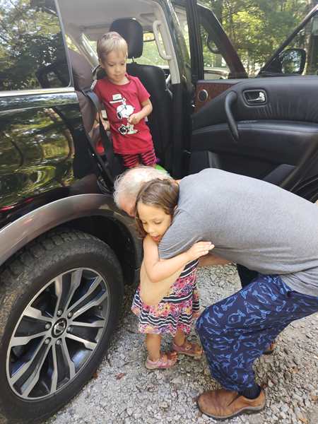 Day 1418. Today it was 7:30, when Sammy woke up. We got up, and I immediately started packing, while Randy ate breakfast first with the kids. Once I was done packing, I went to have breakfast as well, and Randy closed the suitcases and put them into the car. The kids were enjoying their last moments with our friends they have come to love. Especially Sammy who held on to his new friend Marsha and didn't want to let go of her. Once we were all done, we went to the car, where more pictures were taken, and Tammy (who's not a big hugger) gave our friend a hug. We said our good-byes and left just after 9:30 am.