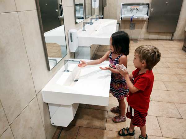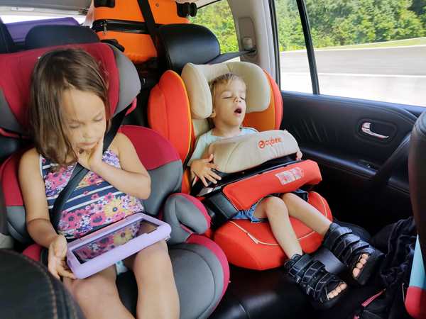 As was the case the last two travel days, we had about 370 miles to drive today, which was 380 in total in the end and took us 7 hours driving time. The kids were playing or listening or watching on their tablets, but I never had more than 5 minutes without having to help them, primarily because of Sammy. He likes pushing around on the bottom, and so I have to keep fixing it. Not being able to completely reach him in his back seat makes it even harder, and so I often have to unbuckle to be able to help.