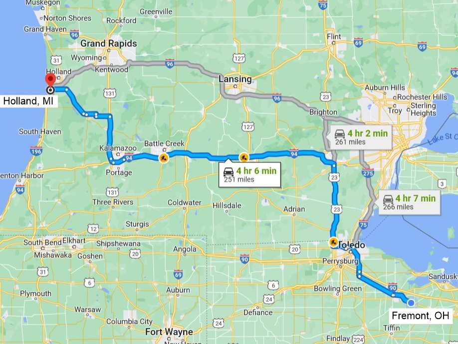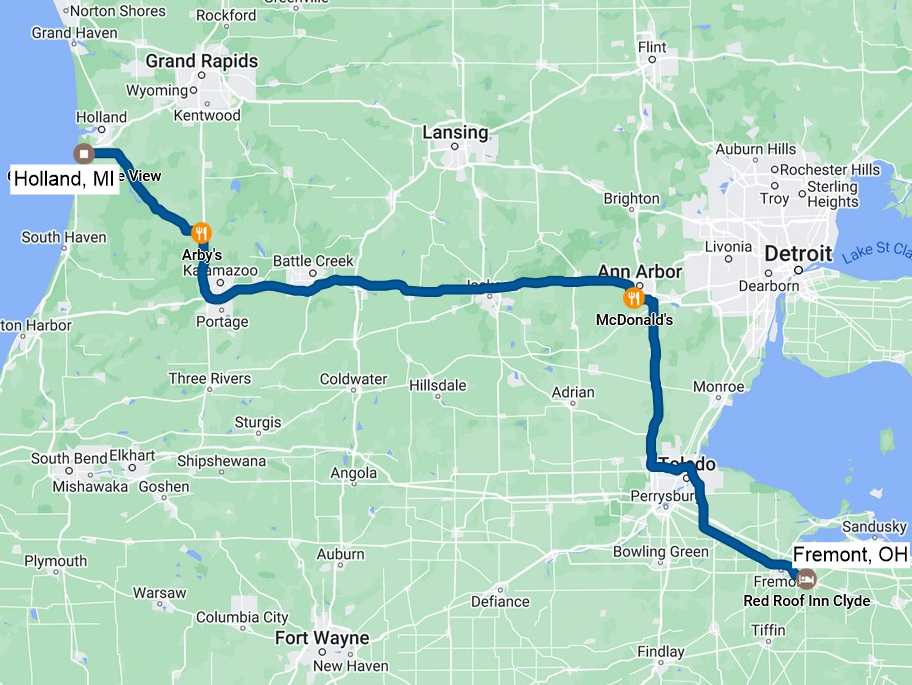 We had a shorter drive than yesterday ahead of us, just 250 miles. I was looking for a McDonald's with a playground along the route, and there was one in Ann Arbor. I actually have an old friend there who I had messaged yesterday to see whether he could join us for lunch, but he had not responded. After I had found the McDonald's, I messaged him again to let him know where we'd be in case he could join us. It was an hour before us getting there, and so I decided to call and let it ring a few times to make him aware of the messages I had sent. A moment later he called back and told me he'd cancel a lunch appointment to see us. What joy that I would see him again after at least 13 years, and just 10 days after my 30-year spiritual birthday, as God used him for me to come to Him.