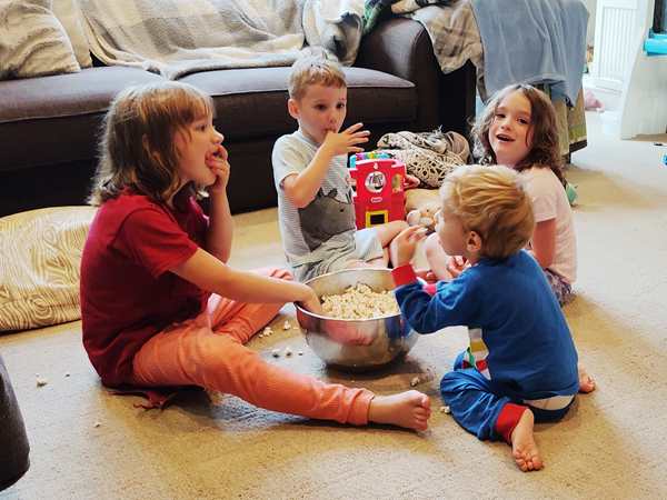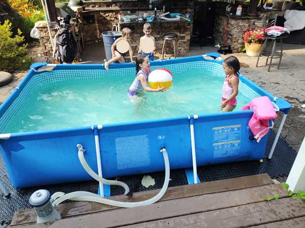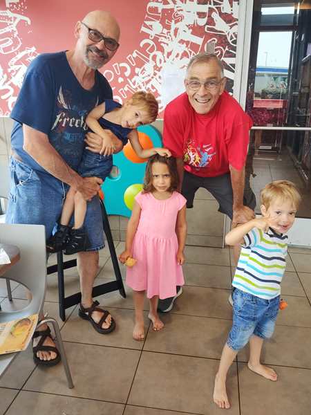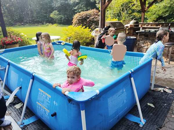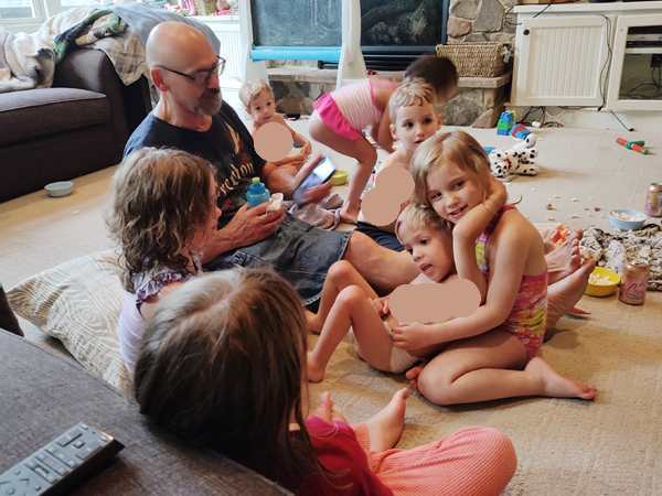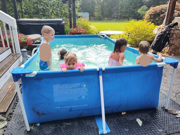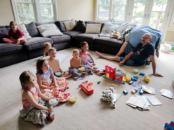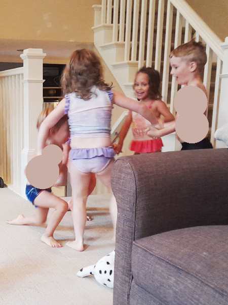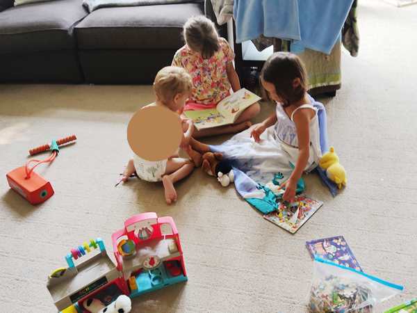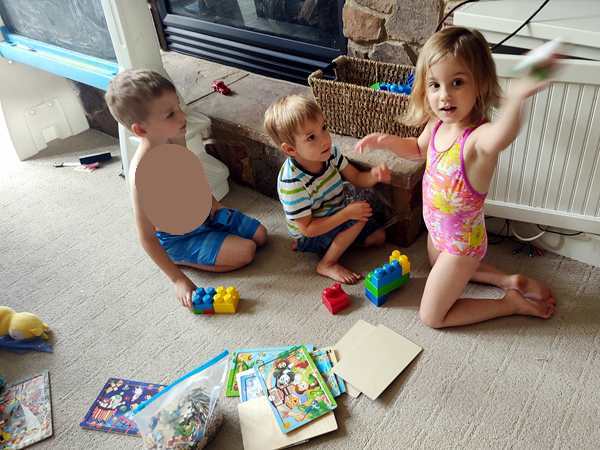 The kids were being shy about getting out of the car, especially Emmy, who did not want to come out. They stuck to me at first, but that passed very quickly. A few hours later they were inseparable from the local triplets and were having the greatest fun with them.