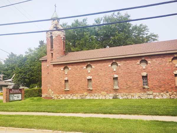 We still had nearly 3 hours to drive, and it was nap time. Tammy fell asleep first, but the boys resisted for the longest time. I don't think Sammy every slept. Emmy eventually did fall asleep after all; I guess he didn't want to lose his tablet privileges. I myself never got to sleep unfortunately. After over an hour Tammy woke up, later Emmy did as well, and they were all on their tablets again, and doing pretty well. It was Sammy who'd had enough of it eventually, and I had to entertain him a little for the last half hour. We were driving through farmland and by farm houses; it looked really rural. And I thought this church I took a picture of was cute.