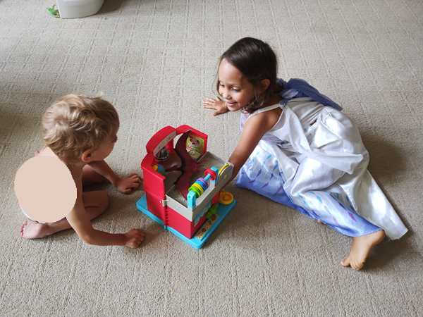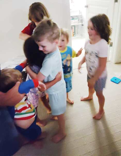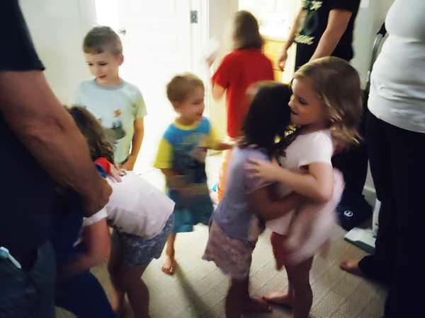 We went inside and met their triplets, two girls and a boy, who showed ours their room, then they started playing with them. Even Sammy ended up having lots of kids playing with him, even though they treated him like a baby. He was laughing and enjoying it.