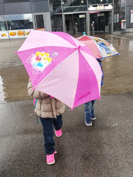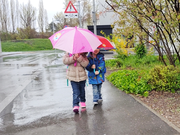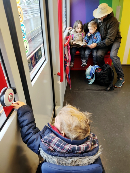 It was still raining, and so we chose not to walk all the way to the subway but to take the tram, even though it meant waiting for it for a while. At least it was a new one that came. After we got off, we took the subway home, where we arrived at 6:30. Today the kids had not watched any videos, as Randy had taken books along for them to read, and it worked.