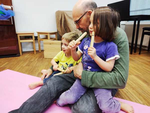 Then the teacher gave them wooden sticks to play. She asked them to tap the syllables of words, which was rather hard for them. They practiced quite a bit, then sorted the words into categories according to their number of syllables.