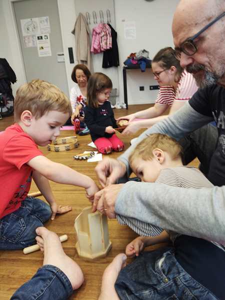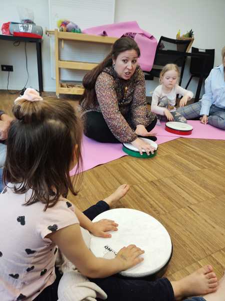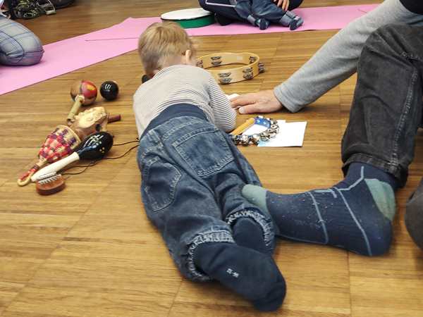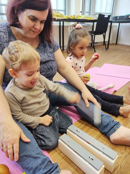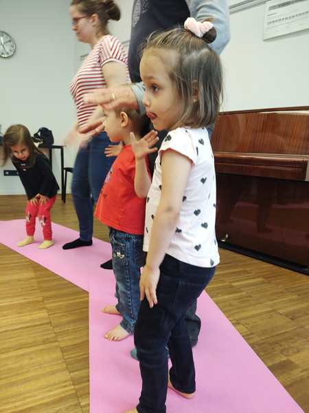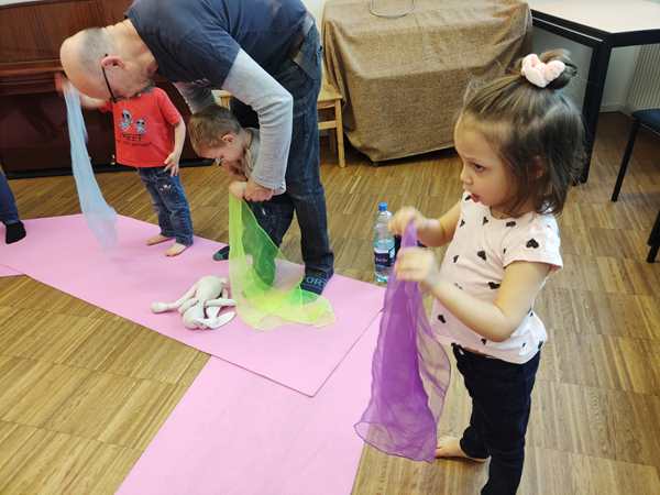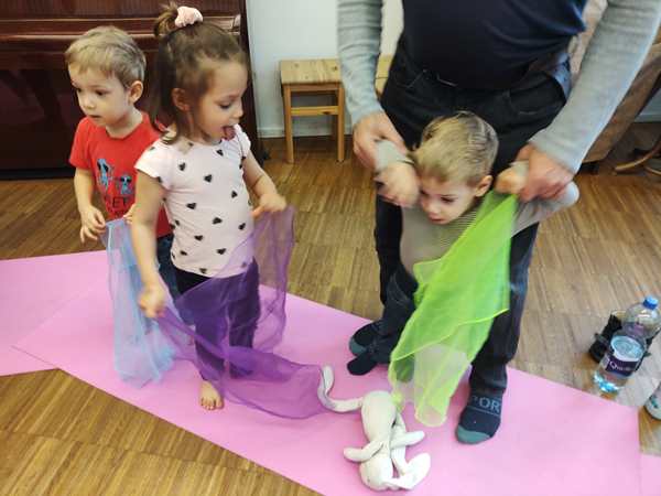 Then she taught the kids an African song with actions; Tammy and Emmy were not very motivated. She then handed out fabric to everyone and played the song off her phone. The kids were allowed to dance any way they liked; they still didn't move as much as usual. Then she did the Danube song. We walked in a circle, and one child after another was called up to turn in place. Our kids are professsionals at that.