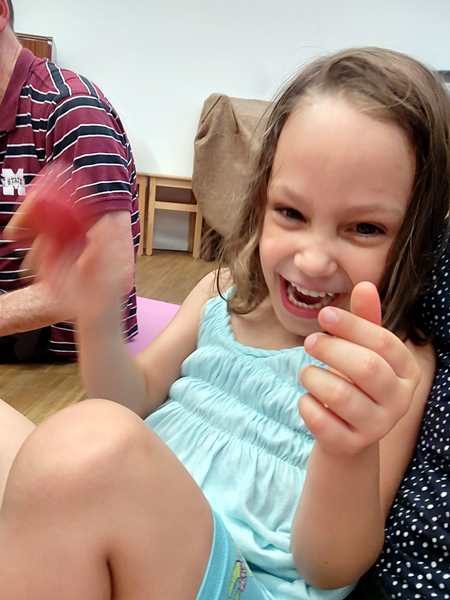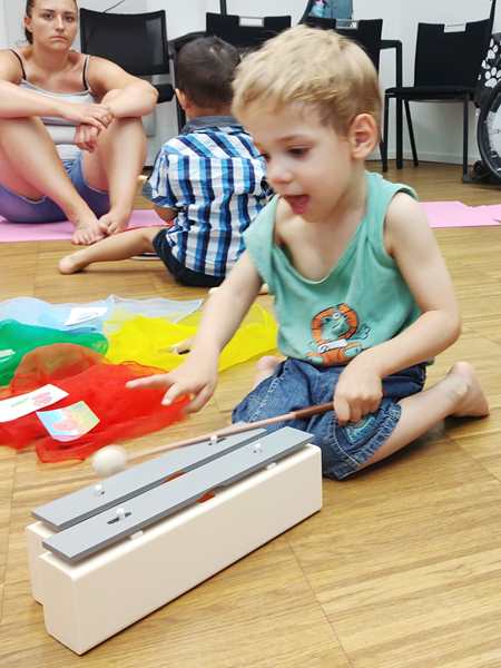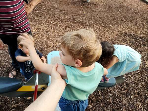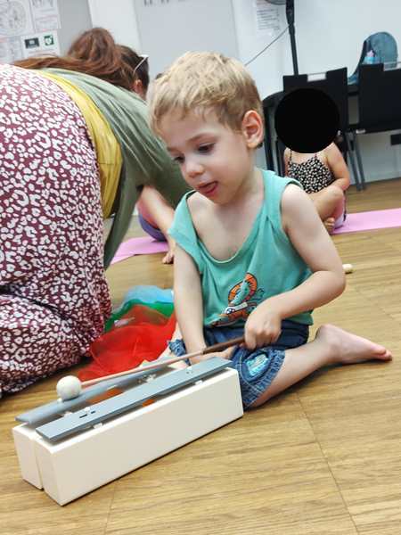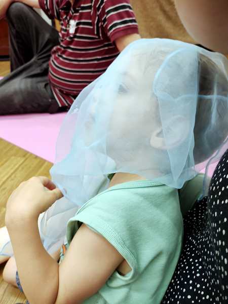 The teacher did a few dances, and had them tap rhythms, but nothing too hard. One time she got the two sound bars out, and Sammy went first playing it. It then made the rounds, going from child to child. When we took it away from Sammy to give it to the next child, Sammy was upset and started crying hard, as he wanted to keep playing. I tried to comfort him, but it took a while. The teacher had pity on him, and let him have it again as the last child, which he was really happy about.