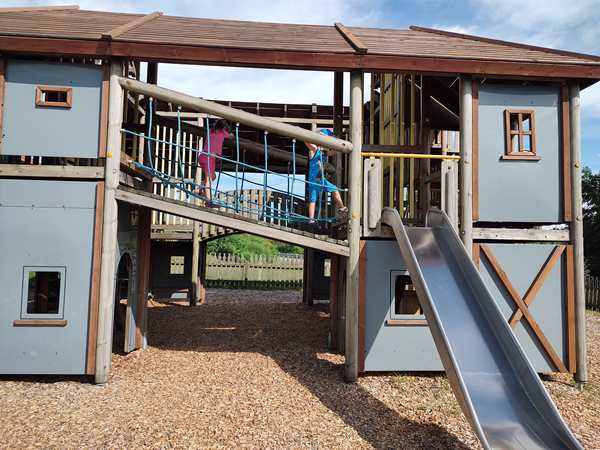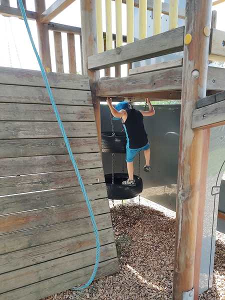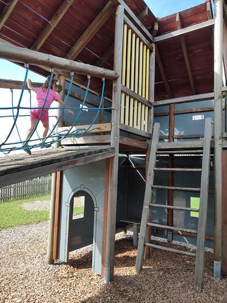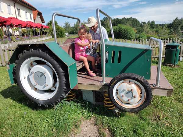 We had a bathroom break near Linz, and they also had a playground there. It was extremely hot, but the kids spent a few minutes playing there. Then Randy got some coffee to stay awake, and we continued on our trip. We stopped another time for a bathroom break and got some Happy Meals for the kids, then continued on right away.