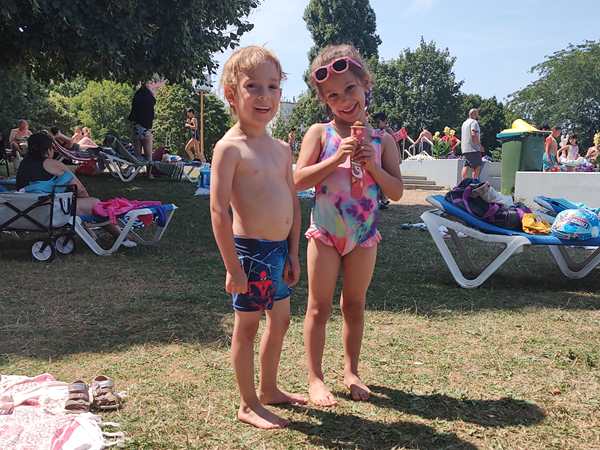And then the teacher said they were getting ready to leave. They had to return to the tennis school with the other kids where their parents would pick them up. Our kids were also ready to leave, and so we already left the pool at 3:30 pm, which was much earlier than I had expected.