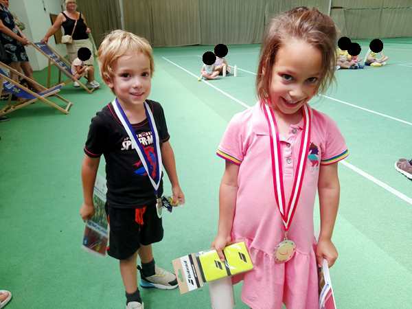 Sammy and I got to stay home and have fun. First we stayed upstairs, then we went downstairs. We had a good time together. However, if I had known that the kids had a special ending ceremony at their camp, we would have all gone there. And so all I have is the pictures and videos Randy brought home from there. All the parents and siblings were there watching. Each kid got a medal, a certificate and got to pick a gift. I was wondering why it took them so long to come home, as it was about 3:40 before they did. The I found out why. Those are really nice medals that they got.