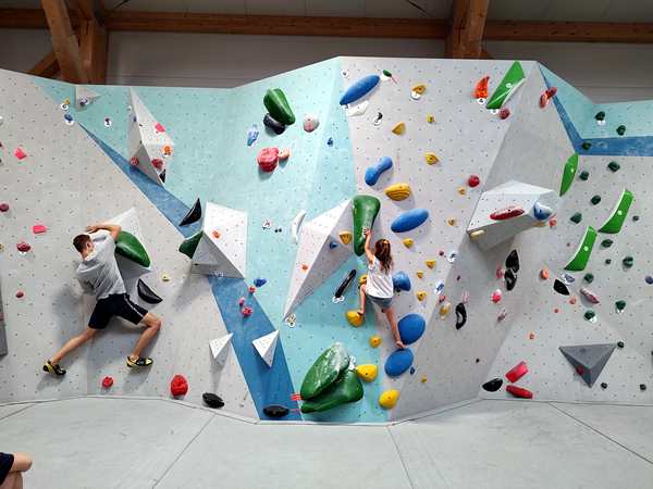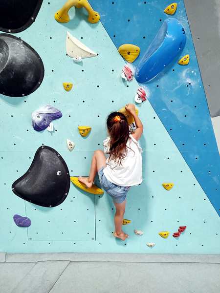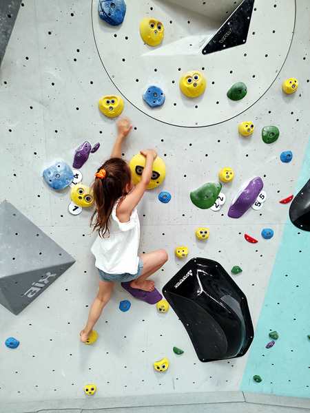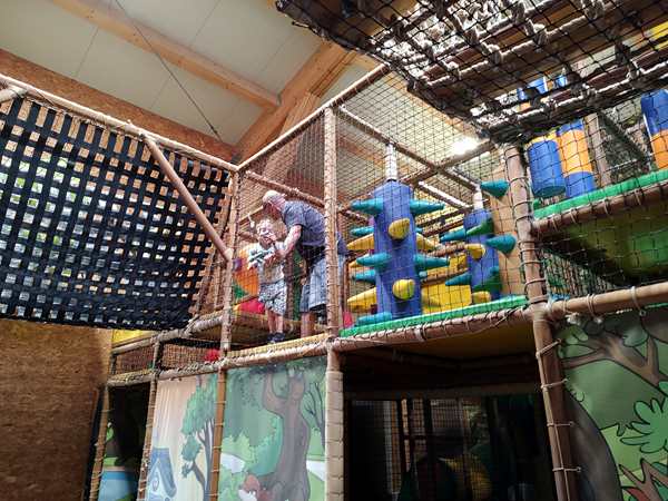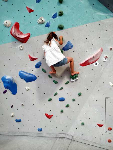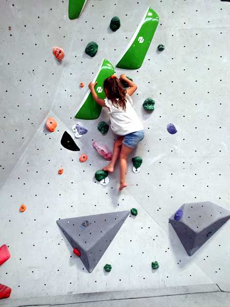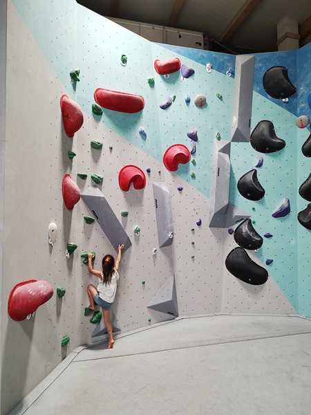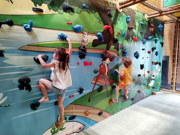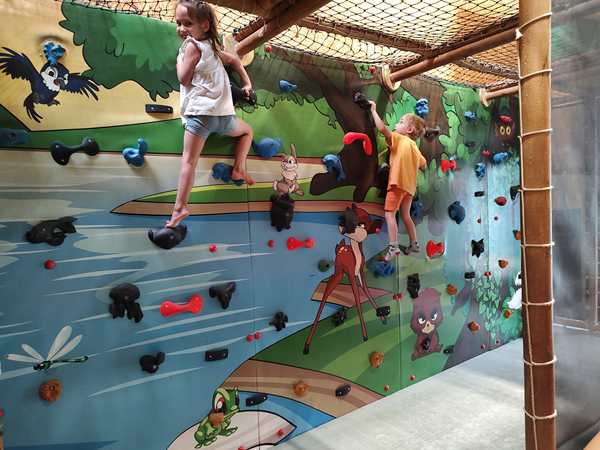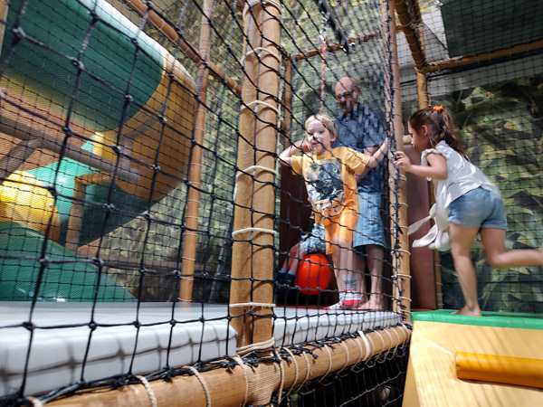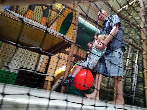 It was really huge, and the floor was actually very soft, like big, air-filled mats. There were no people working there, just children and teenagers having fun, plus a few older people. Tammy started climbing up and down walls. I kept her from going too high, as she had no rope, and as I had no way of getting her down should she not be able to get down herself. I was really impressed with how well we did.