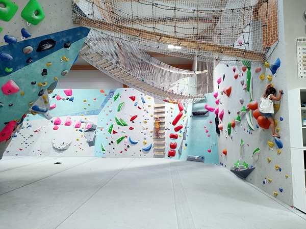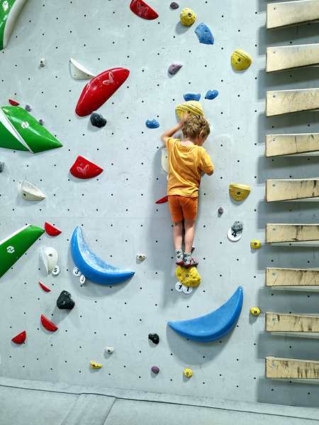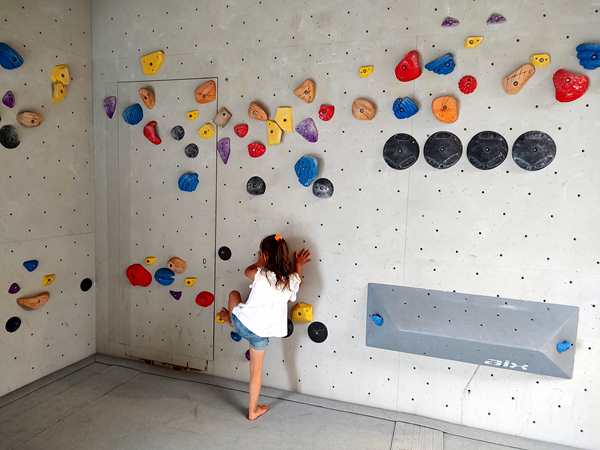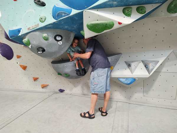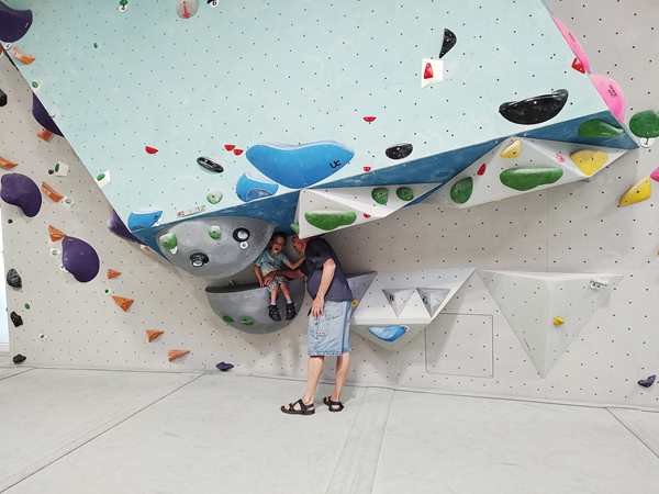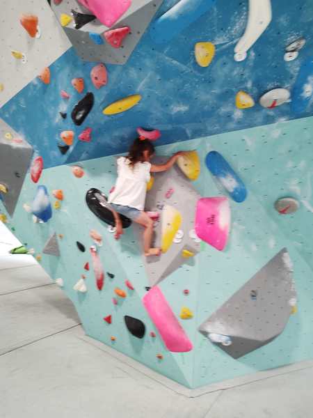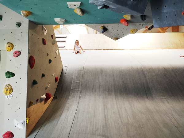 There was a lot to do there, including a small climbing well that they climbed up on quickly. Through a window I saw another climbing hall nextdoors, and Tammy agreed to go check it out with me. Emmy did not want to.