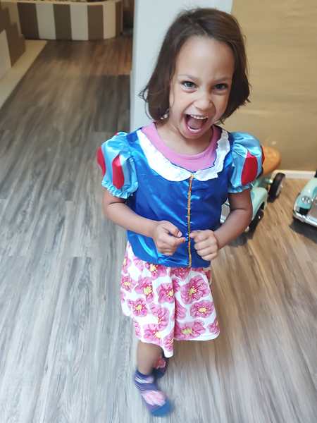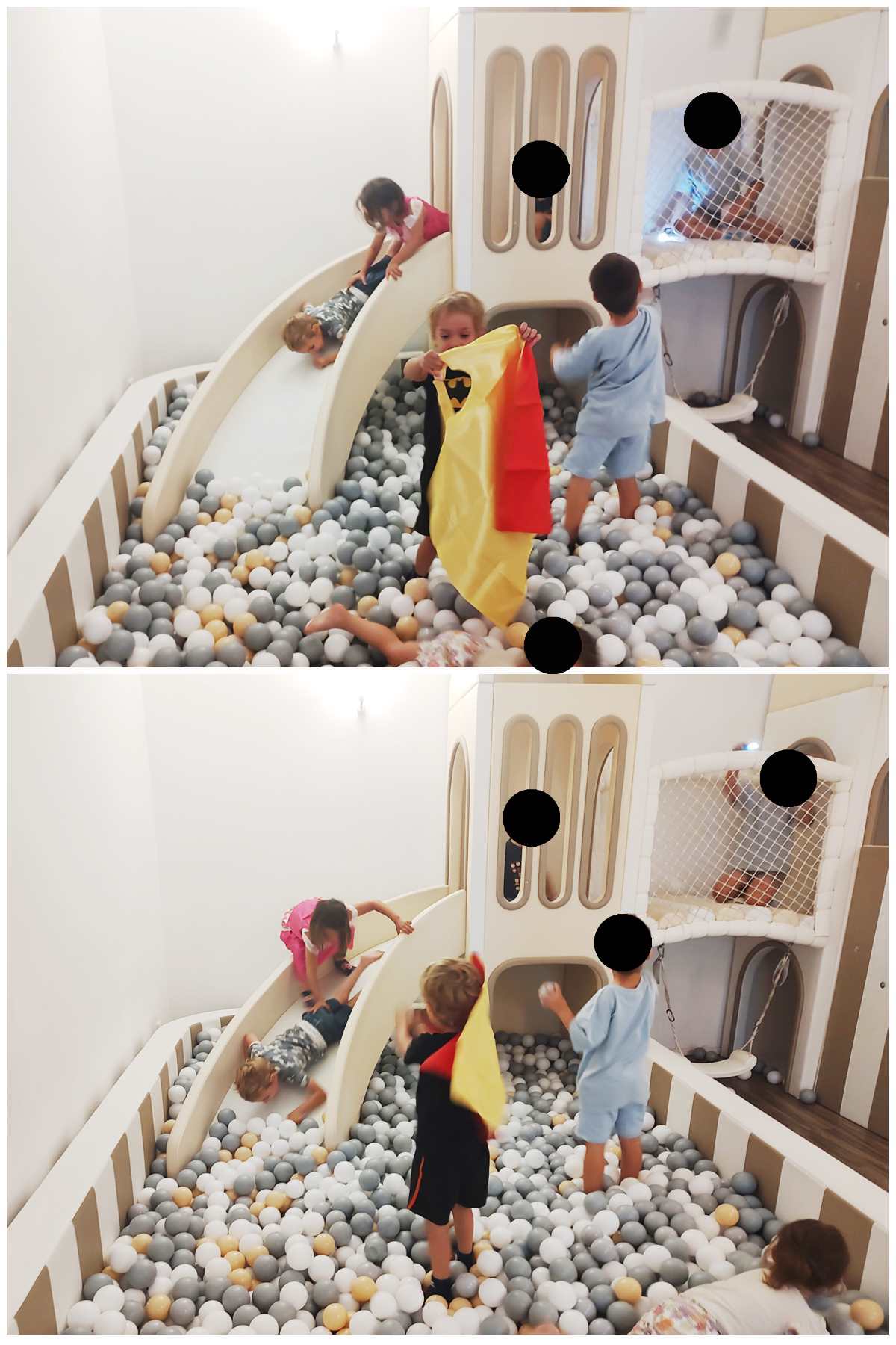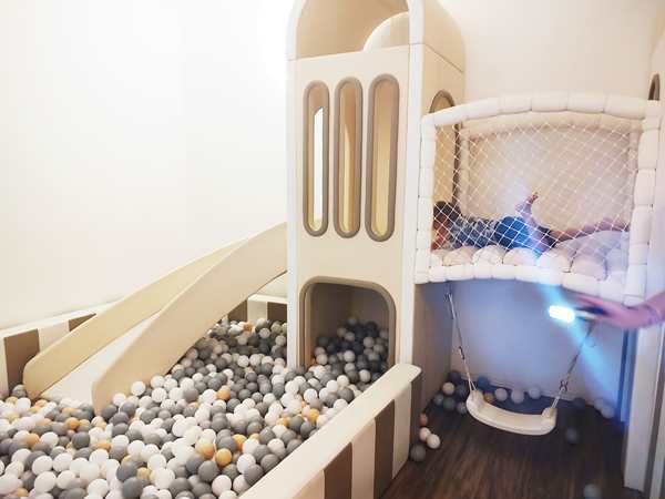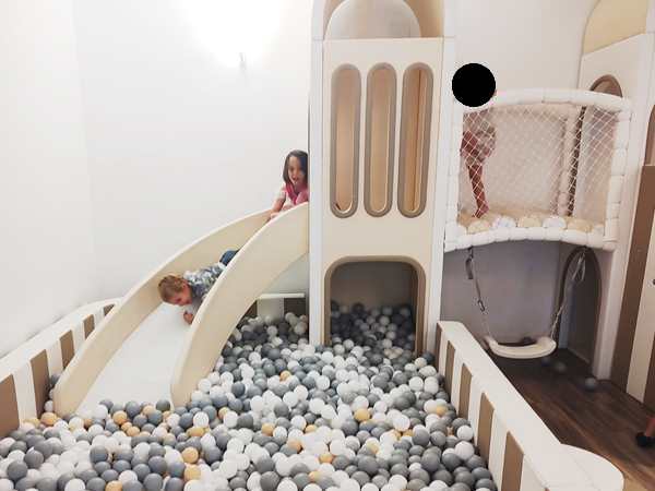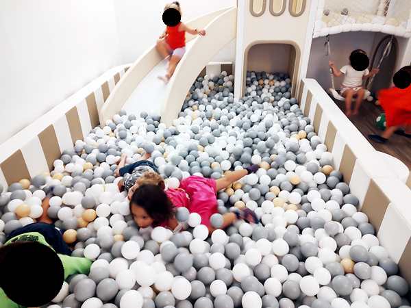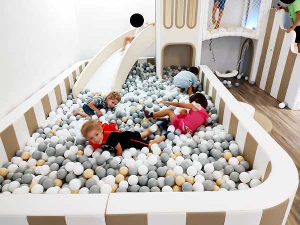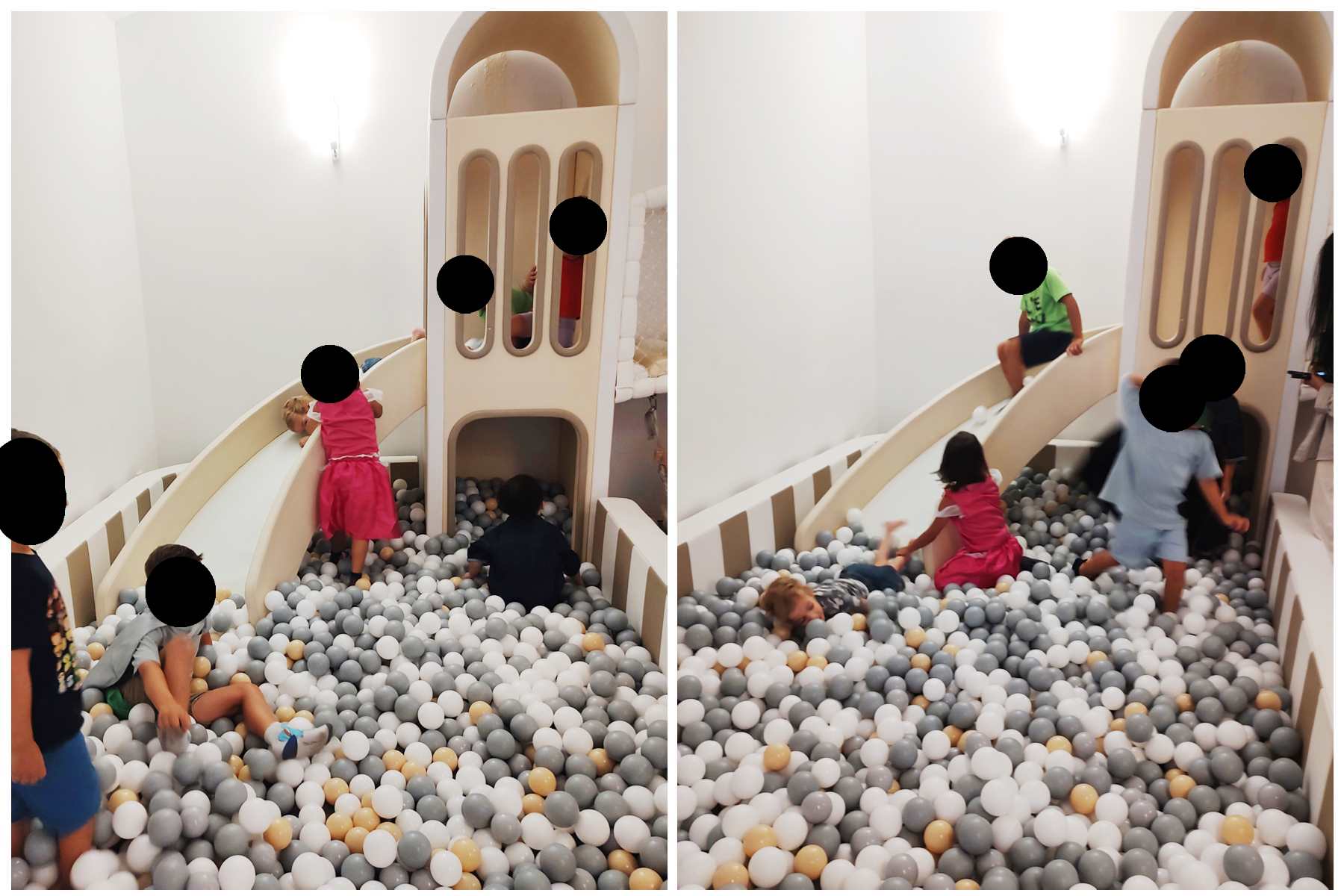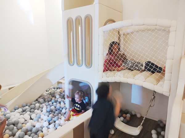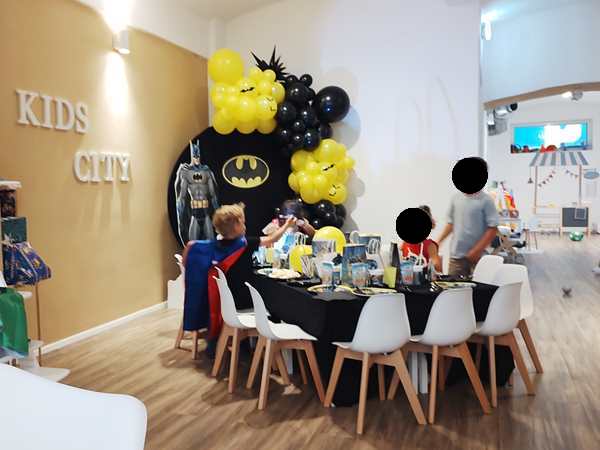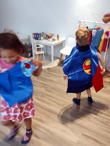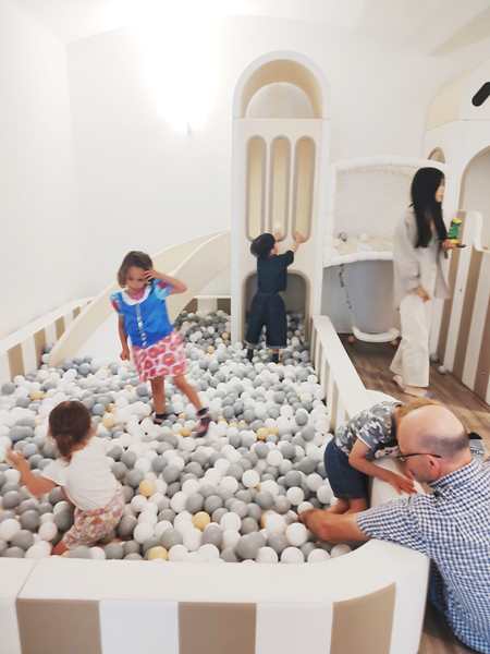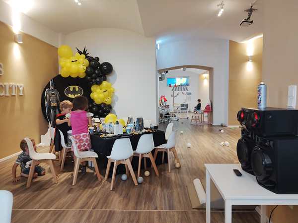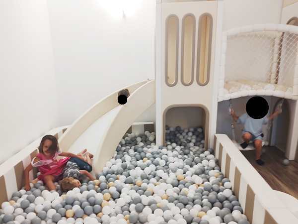 We finally found the entrance to the underground party room and were warmly greeted by the birthday kid's parents. The boy was turning 5, just like our kids whose fifth birthday in two weeks. Tammy and Emmy quickly ran off to play with the other kids. There were capes to put on and princess dresses. There was a big ballpen with a slide into it and whole lot of other stuff to play with. It kept all the kids busy, and there was a good number of them. They also had a long table set up for the adults. Everyone sat around it and ate the food that was ordered for the adults. It was weird as nobody talked to any of the other parents.